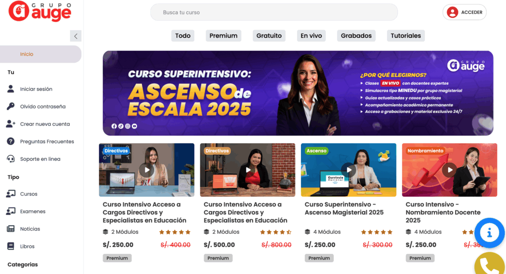 Auge Perú ofrece una amplia variedad de programas formativos diseñados para el desarrollo profesional docente, con contenidos actualizados y metodologías enfocadas en la práctica. Entre los más demandados destacan: