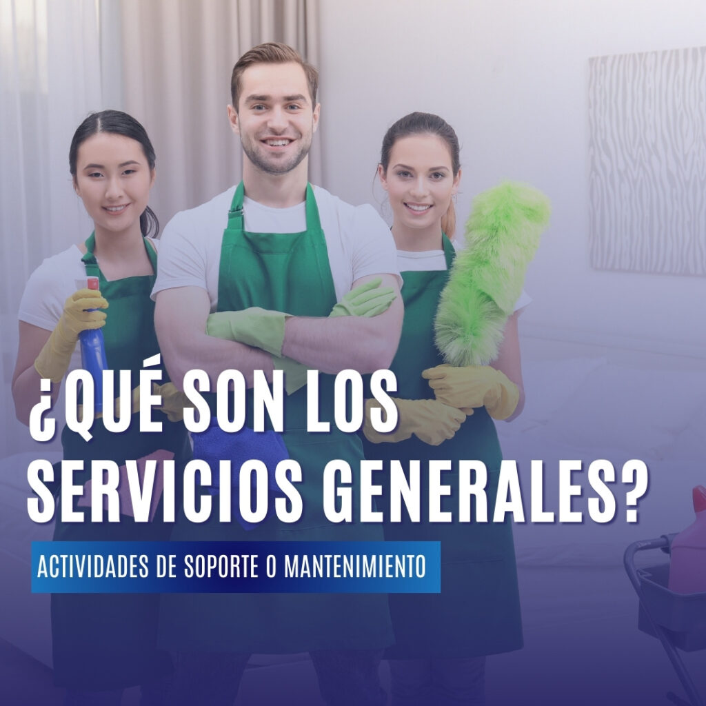 Los servicios generales son todas aquellas actividades de soporte o mantenimiento que ayudan a una organización a operar correctamente, pero que no forman parte de su giro principal.